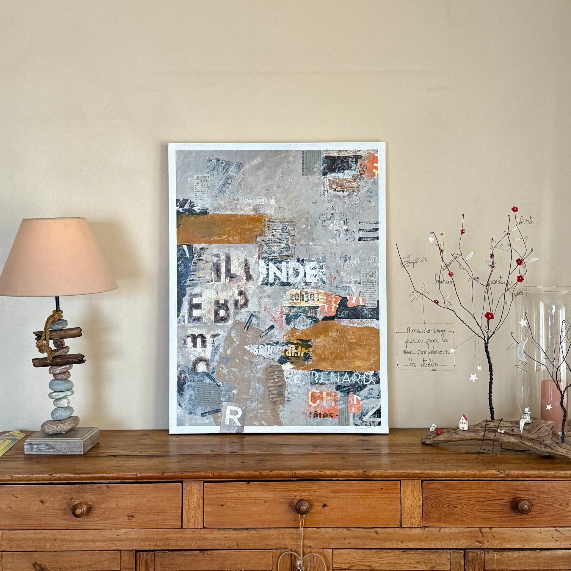 Collage et peinture sur toile 3D / 60 X 80